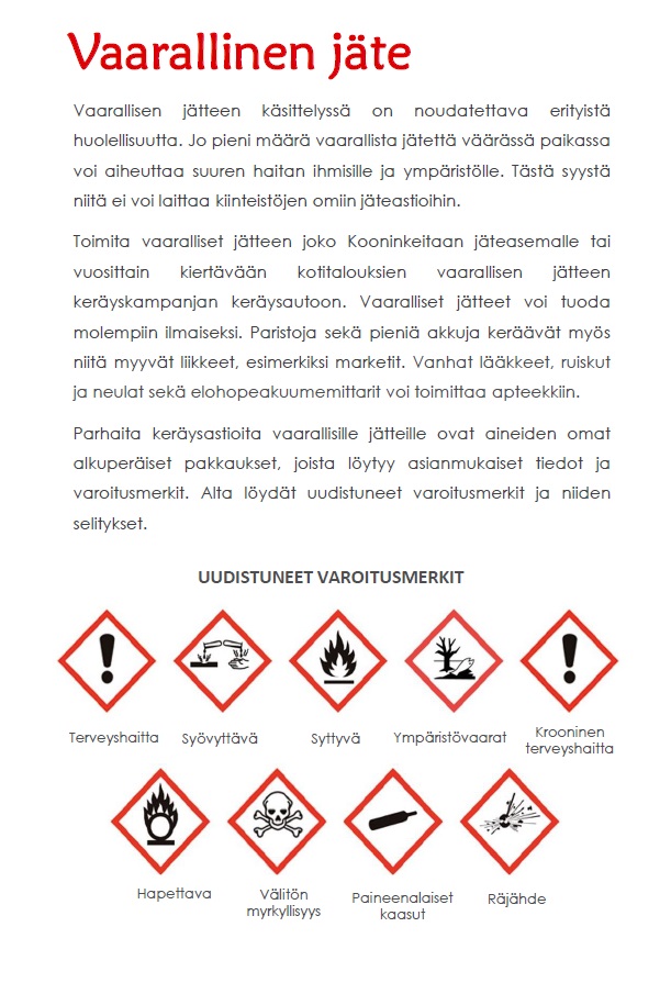 Etusivu » Asuminen ja ympäristö » Jätehuolto » Jätteiden lajitteluohjeet ja vastaanottopaikat » Biojäte » vaarallinen jäte
