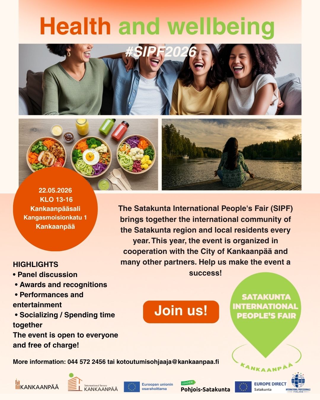 Satakunta International Peoples Fair -tapahtuma Kankaanpäässä perjantaina 22. toukokuuta 2026 kello 13–16.