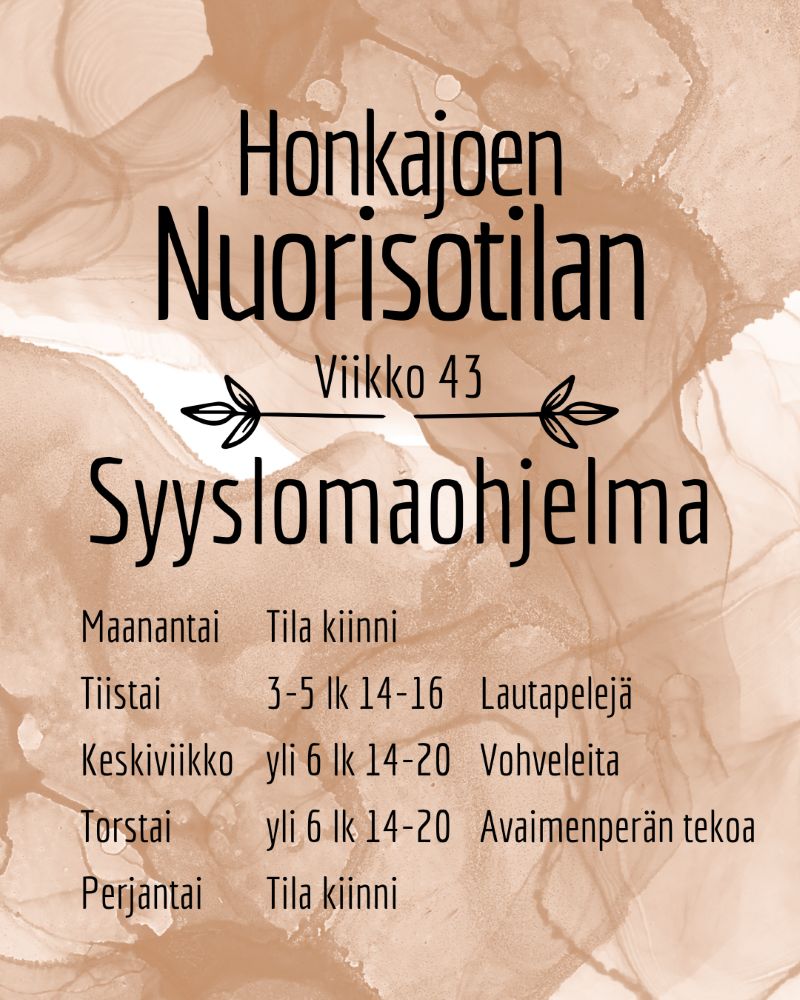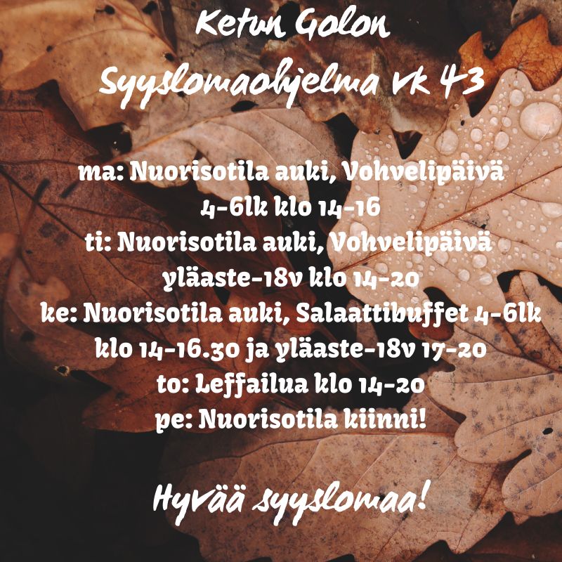 - ti 21. lokakuuta kello 14–20 Vohvelipäivä yläasteikäiset–18v.